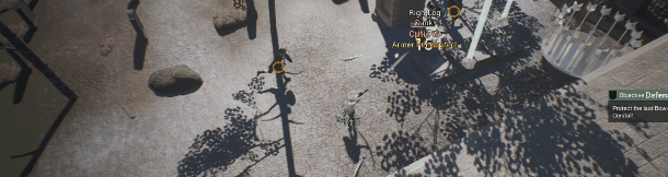 Draw an arrow from your pack, then build up your strength and shoot at the enemy! The greater the force, the faster the arrow and the more damage it will do to the enemy.A shot that hits an enemy may break their joints and slow them down. There is a chance of a blast effect or even a kill shot!