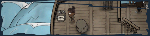 You aren’t much of a captain if you don’t have any crew to command. You start the game completely alone, but soon you’ll encounter castaways that will join your crew. You never know who you’re taking in by the way. Each crewmember has unique traits, and some may be more of a nuisance than of any use. Your crewmembers will take care of the repairs, operate the ship, prepare dinner, fish, load and fire any cannons, and defend your ship. Take care of them well, and they’re a great asset, but neglect them, and they may become disloyal, or crazy, or they’ll just perish. A crew member can be a weakling, a fishing champion, a coward, or afraid of chickens, or all of those at the same time. We already have almost 50 traits in the pipeline, so you’ll be surprised what odd trait combinations you might encounter.
