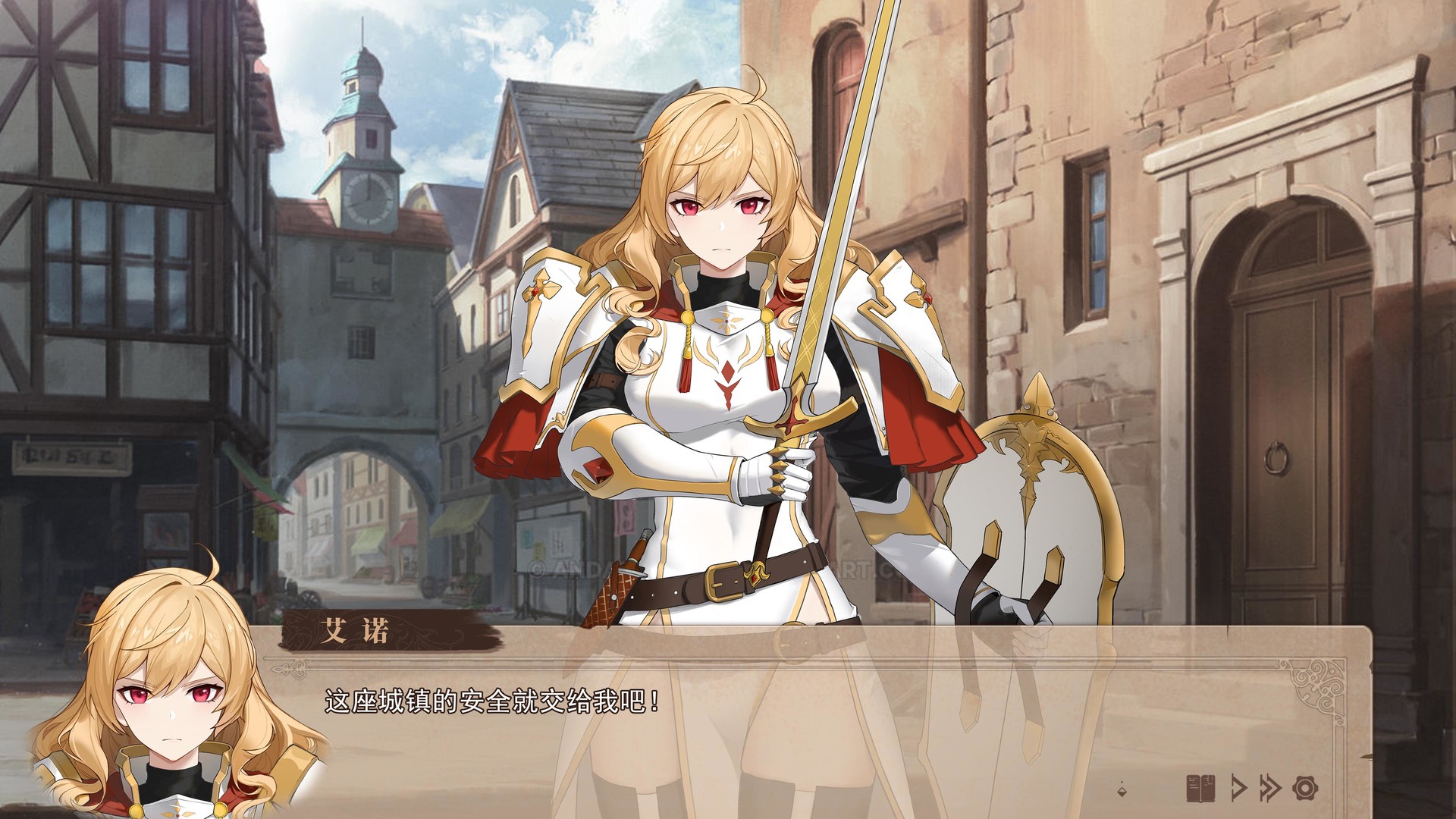 艾琳,英勇的骑士,曾率领王国士兵击退魔族的侵犯,有着镇守城池绝不退缩的勇气与信念。