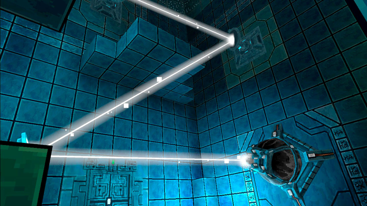 You'll be able to teleport to the ceiling and walls of the rooms, walk all around, grab and align the mirrors and lasers to direct the laser beam past obstacles and hit the right targets.