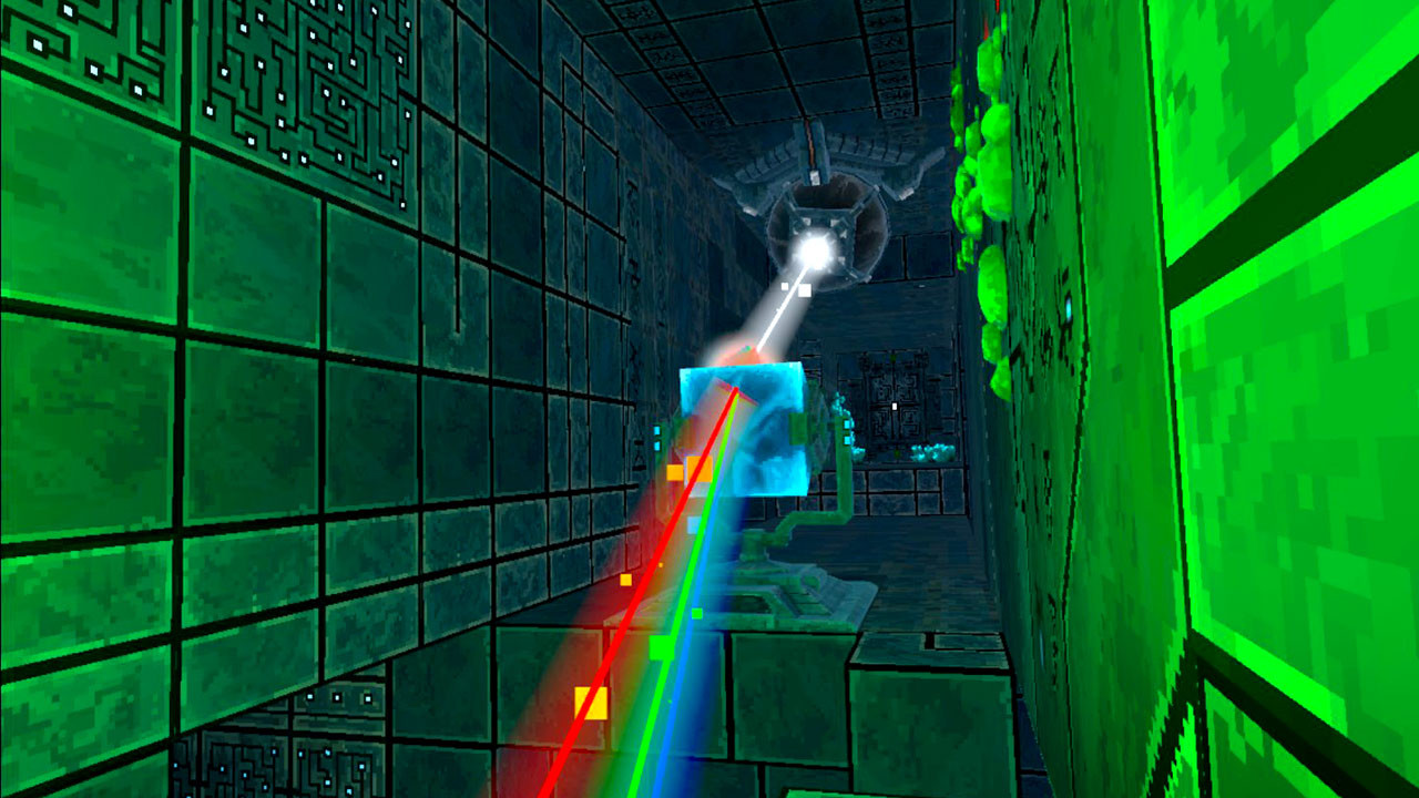Your task is to direct a laser beam through the twisting rooms by using rotatable mirrors, wall mirrors and prisms, uniting different colored lasers and hitting specific targets to open the gates to the next room.