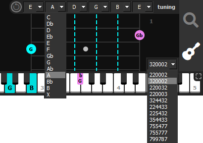 - A dynamic fretboard automatically generates the TAB for the chords you play, providing multiple fingering options along the guitar neck, adjusted for any custom tuning. Making it easy and fun to pick and strum.