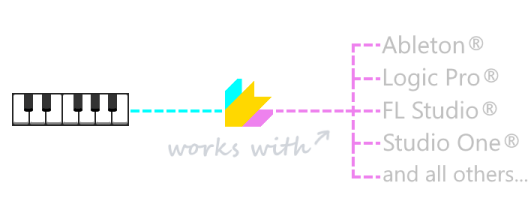 - Pop-out the resizable piano roll for a fully themeable 88 keys.