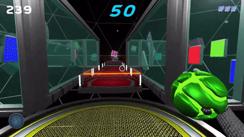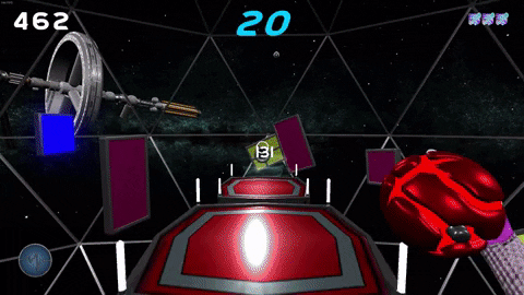 Cosmic Ball Tournament is a first-person platforming arcade game where you will navigate through stages accumulating a high score. Completing stages requires fast platforming skills, quick thinking, and precise aiming. Plan your throws - Each stage has designated loops and walls to hit for bonus points - but beware, each is color-coded and only a matching colored ball will get you the points, whereas an incorrect one will make your score plummet. Activate your special ability, slow down time to line up perfect shots, and claim your title as Cosmic Ball Champion!