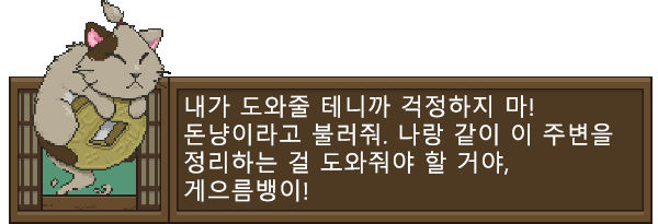 여긴... 원래 멋지고 조용한 마을이었는데, 이상한 일들이 벌어지기 시작했어. 근래 들어서 말이야! 난동을 부리는 영혼들을 찾아서, 손님이 되어 돈을 쓰도록 문제를 해결해 줘야 해. 물론 주민들과 산골짜기 마을에 대해서도 최대한 알아봐야겠지!