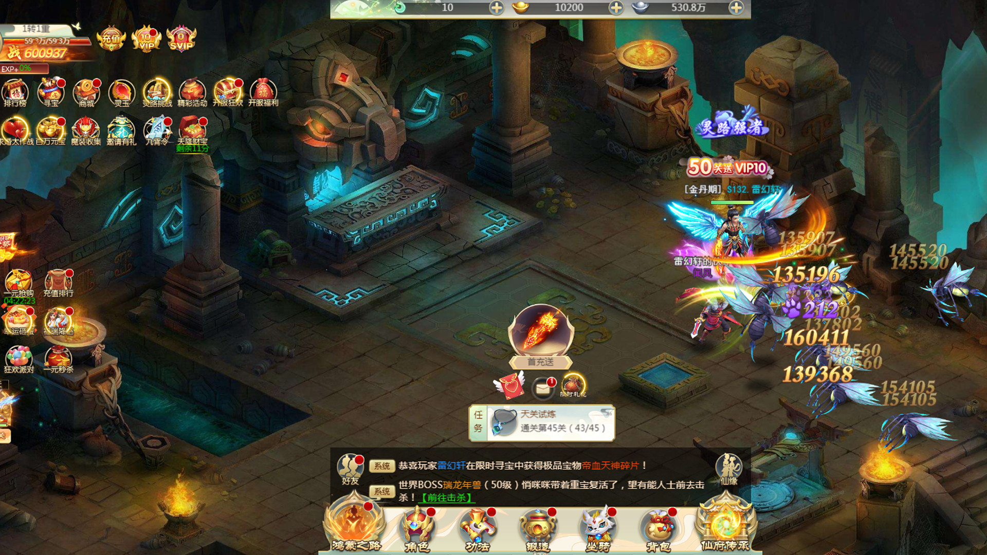 游戏内可免费获得神兵、法宝道具,让你轻松打出爆炸伤害,随着境界的提升,人物技能也将更加强力,一键清屏,傲视三界。