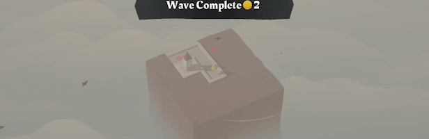 Each round, you place randomly drawn tiles on the isle. Spending coins allows you to skip a tile. When you're ready, start the next enemy wave and watch your placed defenses in action.