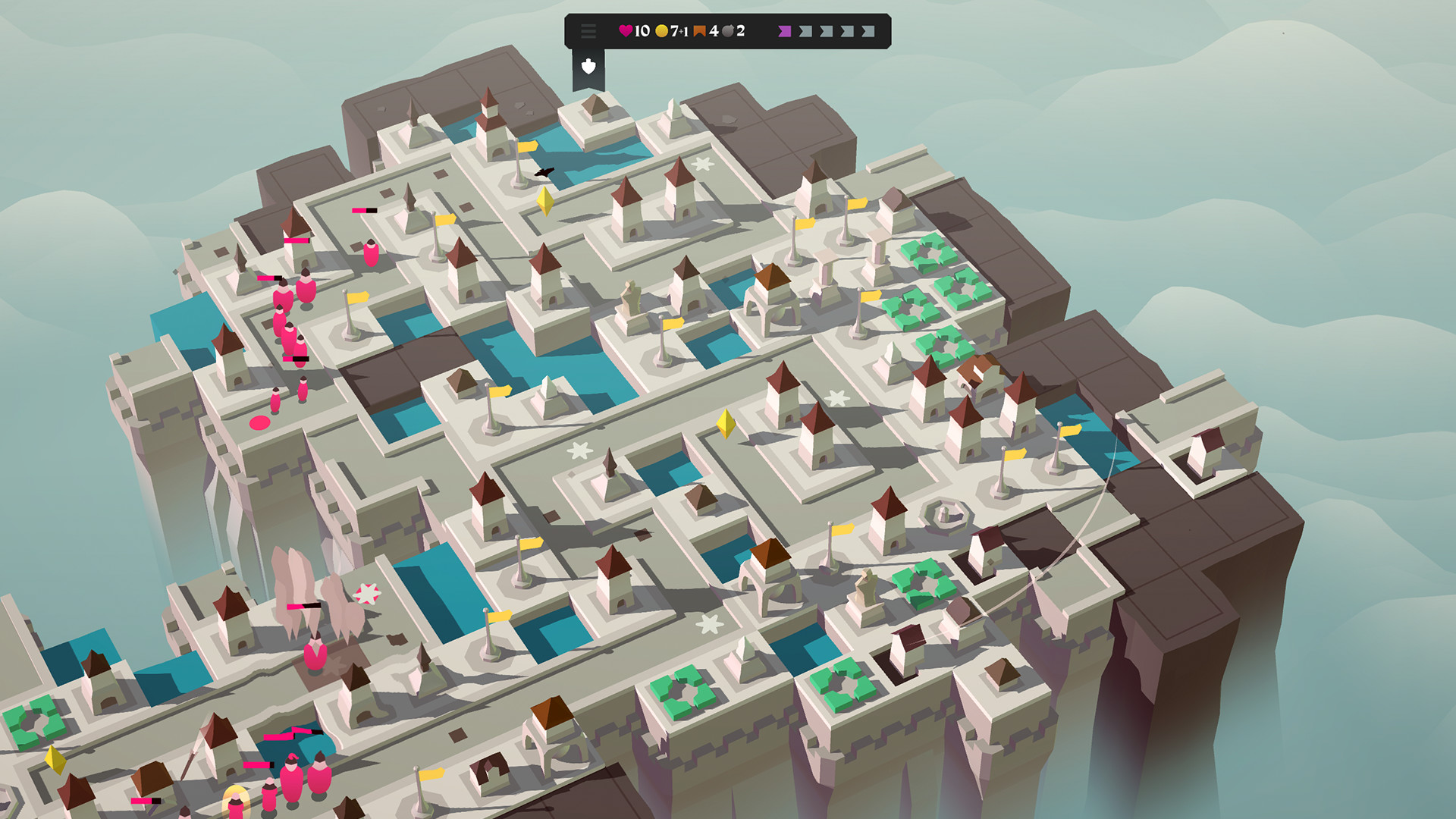 Isle of Arrows is a fusion of board game and tower defense, in which you place randomly drawn tiles to build defenses on an ever-growing piece of land.