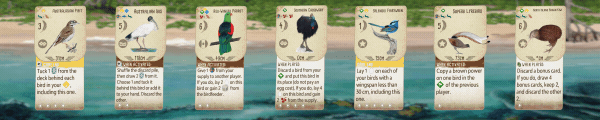 오세아니아 지방의 새들이 Wingspan의 두 번째 확장팩에서 여러분을 기다립니다. 카드와 진짜 녹음된 기록으로 이 새들에 대한 흥미로운 사실들을 알아가세요. 대다수의 새들에겐 새로운 스킬이 포함되어 있으며, 여기엔 게임이 끝났을 때 발동하는 노란색 ‘게임 종료 시’ 능력이 포함됩니다.