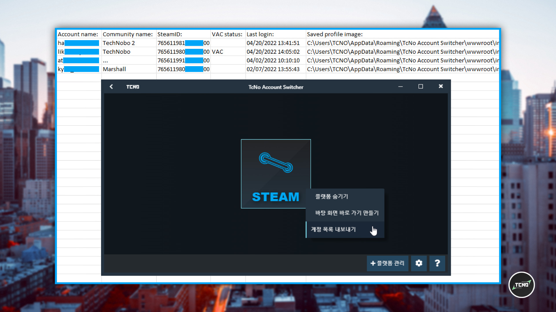 TcNo Account Switcher is a free and open source program that lets you quickly switch game and software accounts/profiles with a few clicks. No more passwords or 2-factor. Sign in once, and forget!