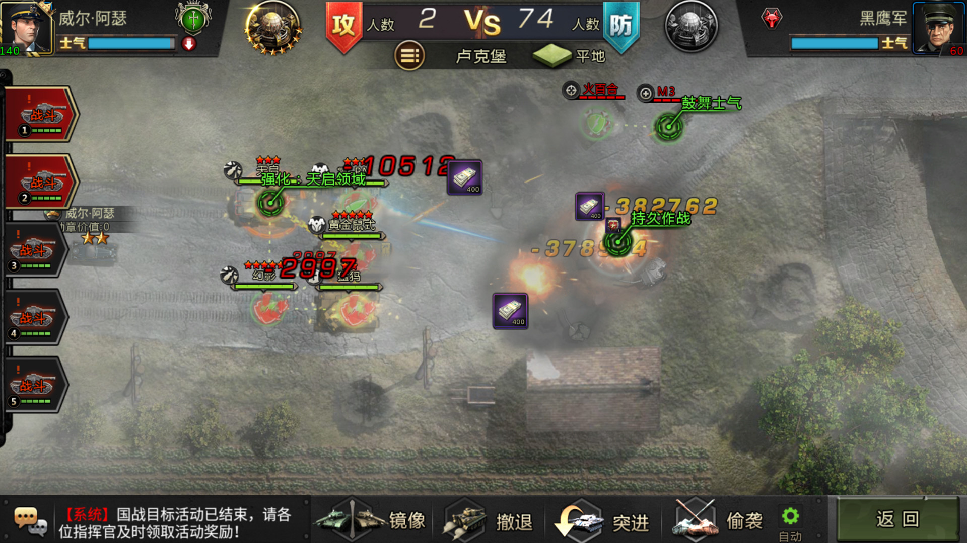 游戏中有不同的战役,会随着战役进度的递进难度有所提升,主要产出指挥官经验、养成道具和坦克培养资源,扫