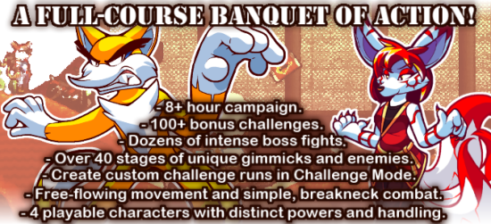 - Fast-paced but deep platforming with an endless array of momentum-boosting tricks!