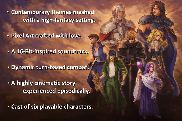 We were greatly inspired by the 16-bit classics: Chrono Trigger, Secret of Evermore, Final Fantasy VI, SMRPG, & more!