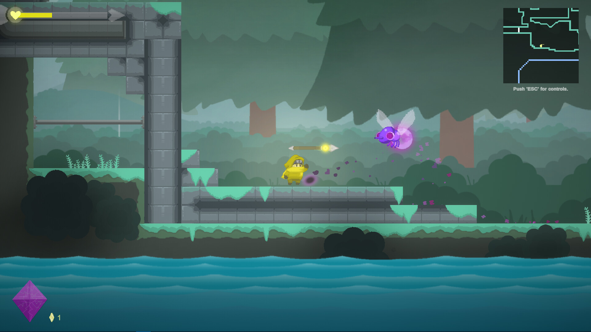 You are Corin, a young Soladin, a sun warrior, but you are only a trainee. You wield a magical Sun-Spear that you can throw, recall, and use as a platform! Your small desert village has been destroyed by the monstrous mosquito minions of an old evil deity that was once trapped in the moon. You have decided to discover where they came from to stop this from happening again. You make your way into a cursed land that you have only read about in books. It is an ancient underground city that is still powered by an ancient Heatgem that produces steam. Here the once great SolLuna Kingdom reigned but over time their was a split in beliefs that caused an all out civil war. You must explore this ancient land and fight your way to the source of the evil!