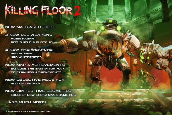 The Killing Floor 2: Christmas Crackdown Update is here just in time for the Holidays! For more information on the new content check out the Official Tripwire Forums here: