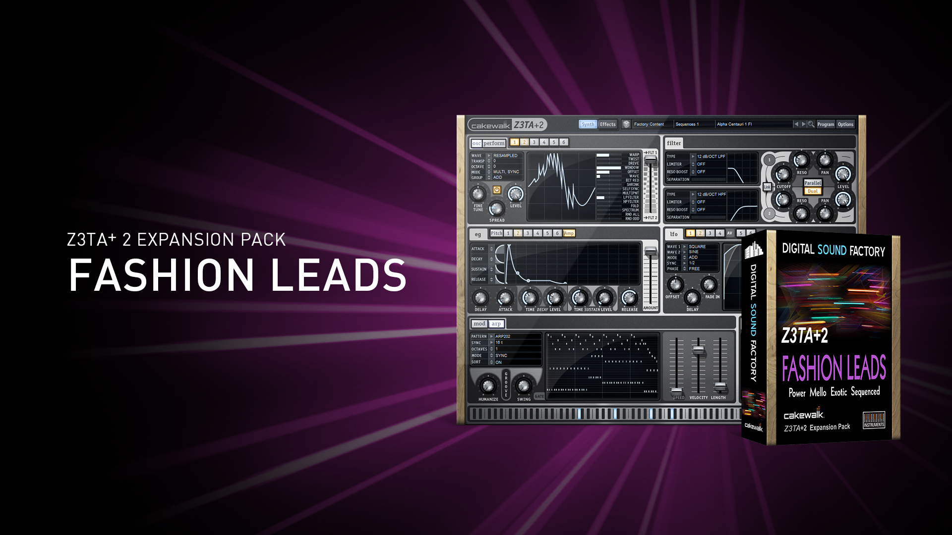 Fashion Leads includes 170 exciting programs and new waveforms. Categories include Fashion Leads, Power Leads, Mello Leads, and Sequences.