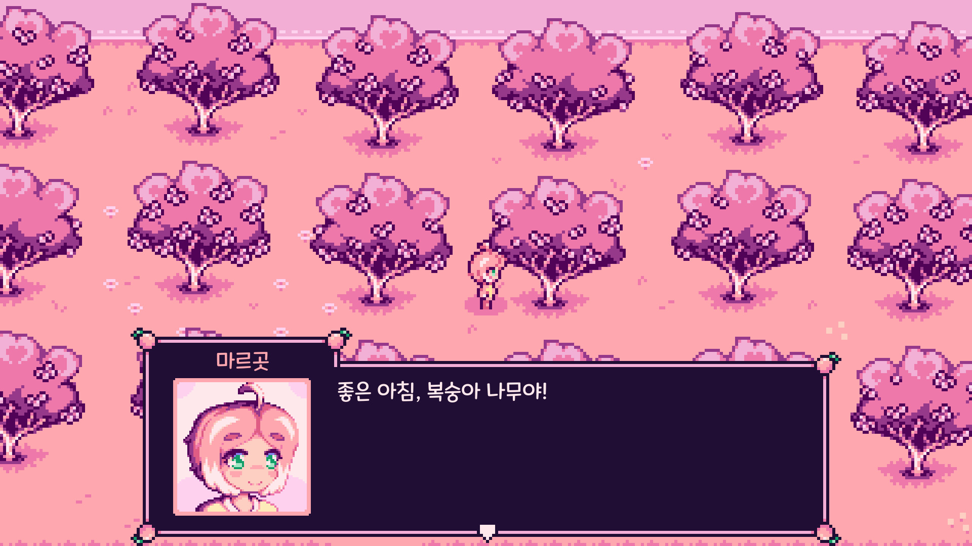 하지만, 성간 복숭아 전파의 꿈은 아직까지는 말 그대로 꿈일 뿐입니다. 마르곳의 우주선은 낡았고, 복숭아는 잘 자라지도 못하며, 이 고독의 우주에서 마르곳의 동료라고는 체리라는 작은 로봇이 유일합니다.