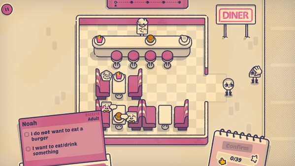 Біля вікна чи поруч із проходом? В окремому залі чи за столом? Одинак чи душа вечірки? В In Is This Seat Taken? ваше завдання — розмістити фігури за їхніми вподобаннями. Це затишна спокійна логічна головоломка, де ви вирішуєте, хто де сидітиме.