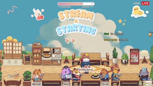 Connect to your stream and turn your stream into cozy cafe where chat join cafe and hangout as customers.