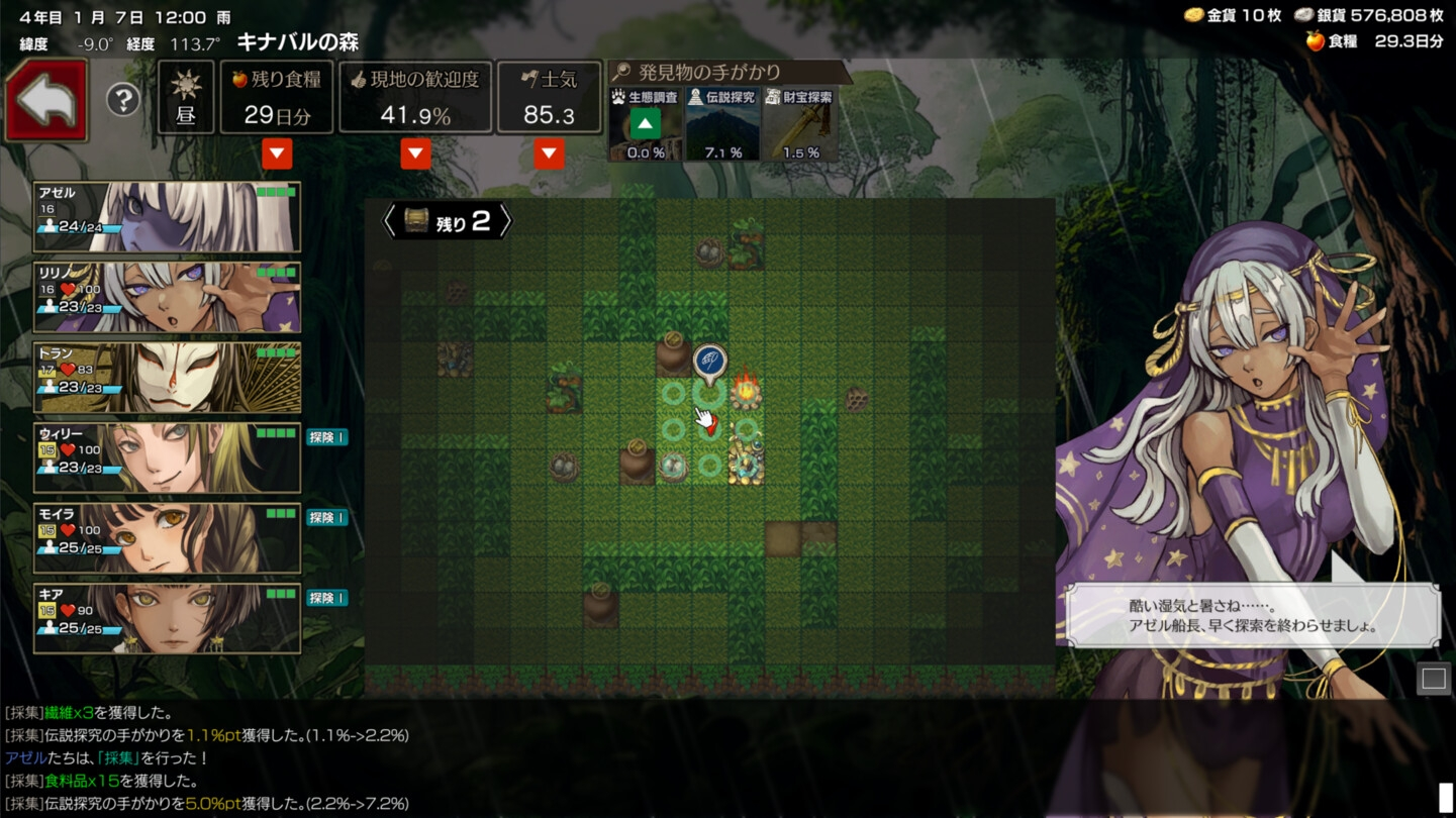 強敵と戦うには、強い船が必要です。造船では資材をたくさん消費するので、陸地の探検や、交易品の転用などを利用してどんどん資材を集めましょう。
