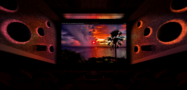 CINEVEO’s 4D Movie Theater v4.0 is the most immersive and advanced VR Cinema simulation available for the Oculus Rift and HTC Vive. Feel total presence in your own personal movie theater and watch your videos on a huge customizable cinema screen. The 4D Movie Theater v4.0 features innovative dynamic lighting effects during movies, such as CINEVEO’s Stereo PFOV Lighting™, which generates visual effects for any video and creates an incredible atmosphere inside the movie theater using the cinema screen’s light, color, reflections, shapes and shadows. To immerse you even further into VR, CINEVEO comes with a multiplayer mode, which can populate your movie theater with an animated live audience made up of real CINEVEO users, who are watching a movie at the same time as you.