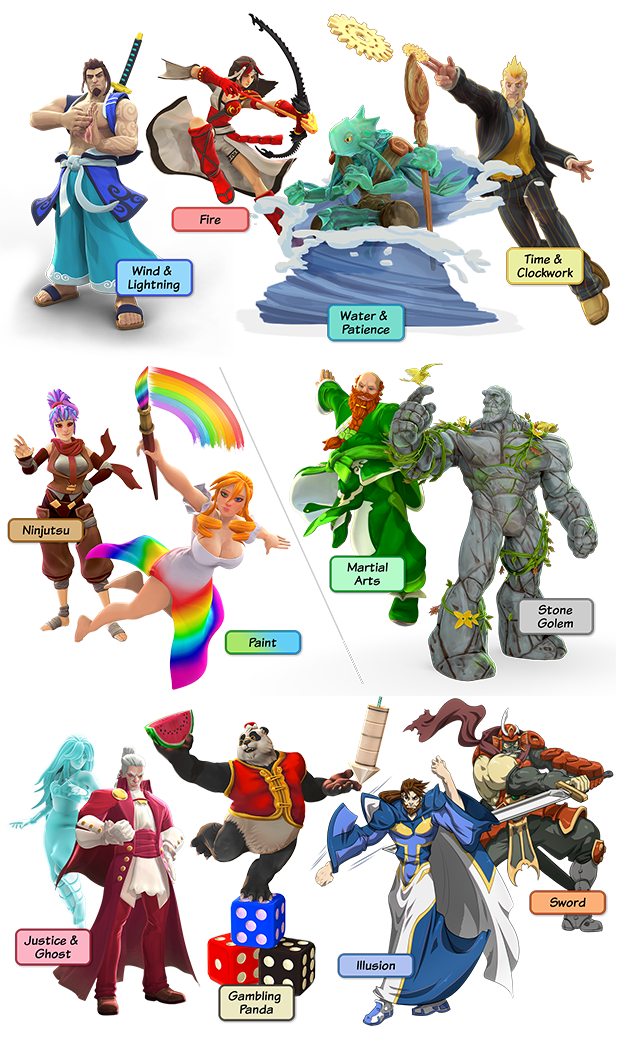 Be an archer with fiery arrows, a colorful painter, a martial arts master who can transform into a dragon, and more! Fantasy meets martial arts in this vibrant world.