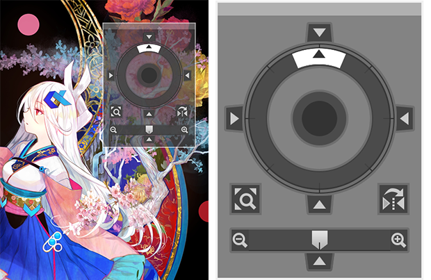 openCanvas' unique Hand tool lets you move, rotate, scale, flip vertical easily. Hand is available by pressing the space key. You can also temporarily switch to Hand while using the brush tool.