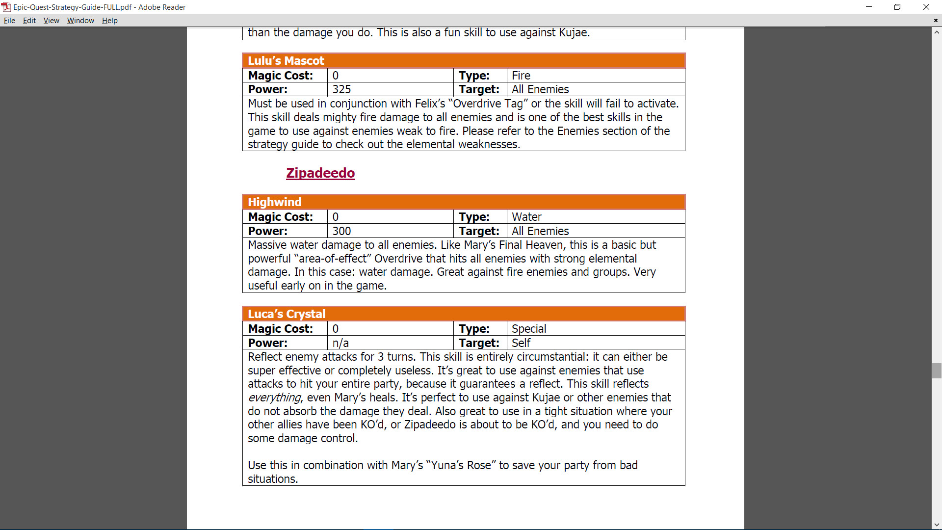 - Details and strategies on ALL enemies: elemental weaknesses, stats, etc.