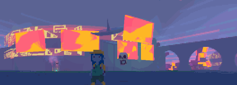 Explore the Spaceport! Navigate the maze of alleyways, side streets, plazas, and bridges as you search for discarded items to burn. Investigate one of various entrances to the mysterious subterranean sewerdungeon, or climb the ominously symmetrical Ziggurat to get a better view of the urban landscape! If you pay attention and keep track of landmarks, you won't get lost... probably.