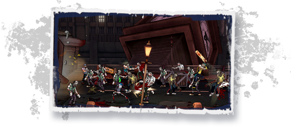 Choose from four survivors, brought together to fight the zombie plague - Teller, Mick ‘The Brick’, Rei, & Eddie. Customise each character’s skillset & wield a destructive arsenal of melee weapons.