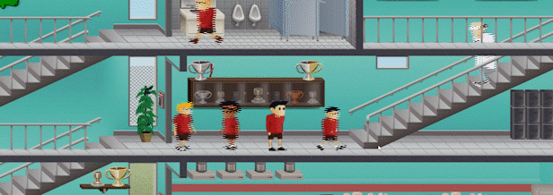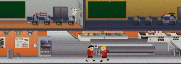 - 2D Side scrolling school based gameplay.