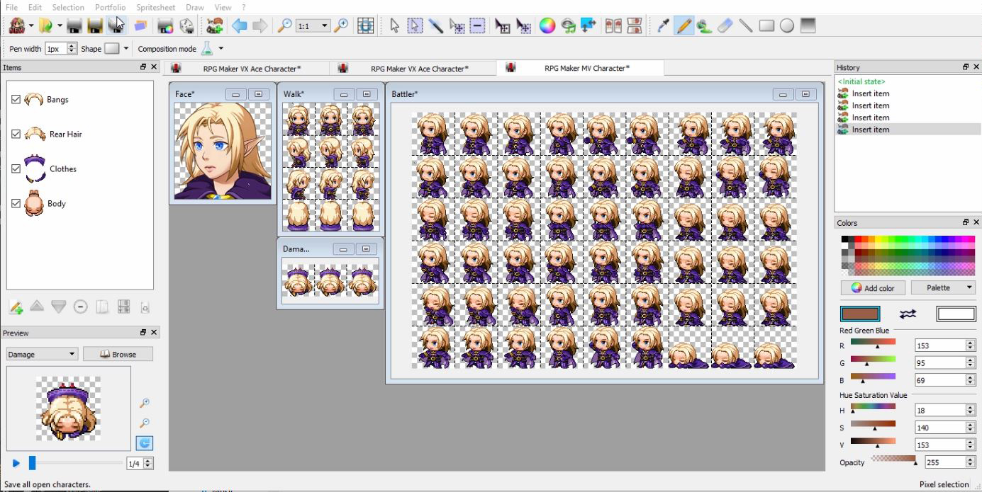 Game Character Hub allows you to easily convert your character assets for different RPG Maker engines.