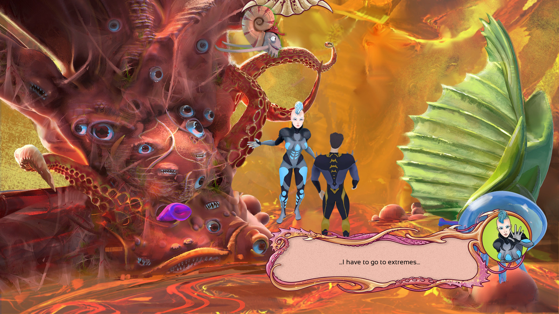 - Puzzles based on the use of many natural and implanted organs (nose, mouth, bioport, reference mollusc, caterpillar-injecta and more!);