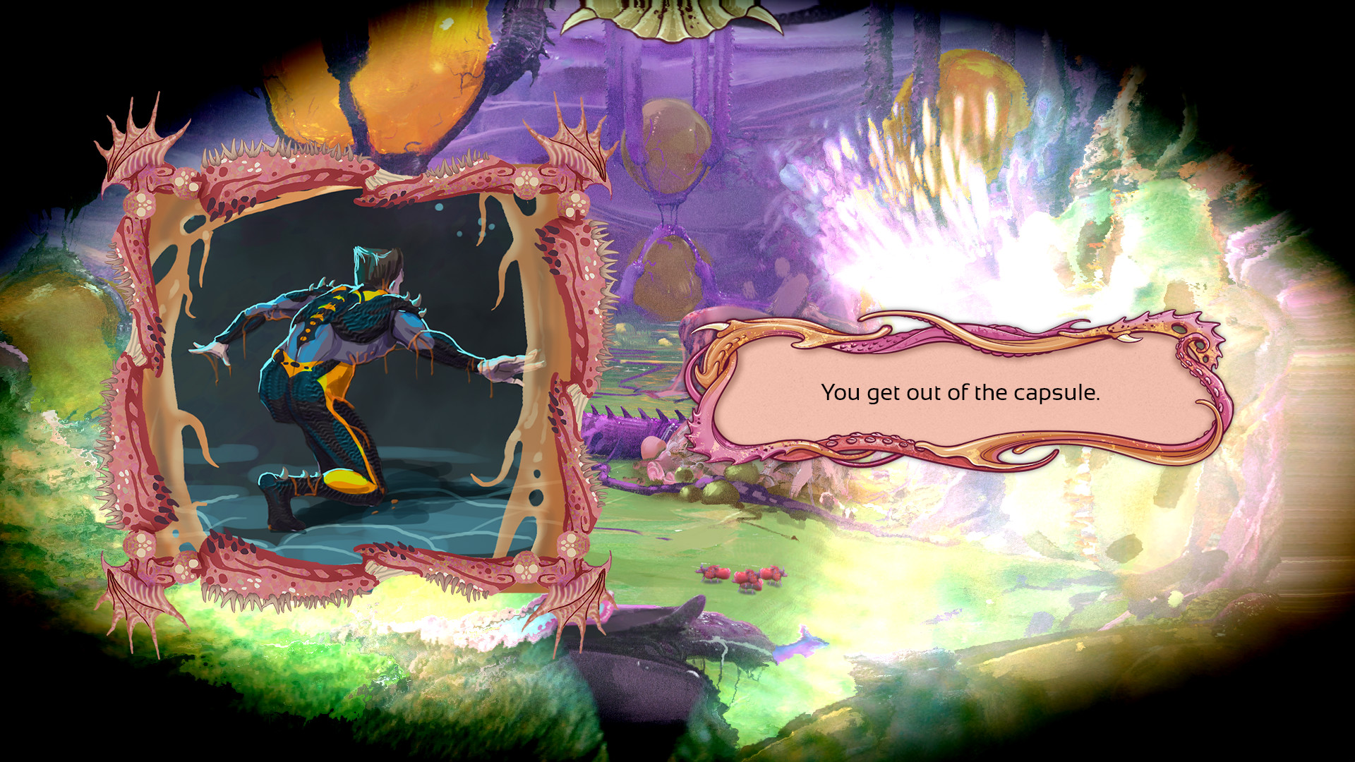 You'll end up locked underwater with a giant ichthyoserver, trip on biogenic hallucinations and even get tied up among mutant beetles. You'll program sentient tangles of tentacles with foreign genes! Don't forget your own body, of course: you'll give yourself extra fingers, lend your eye to a biorobot for espionage, and even let your nose run off and whiff some spores for a while. You'll even enter your own spine!