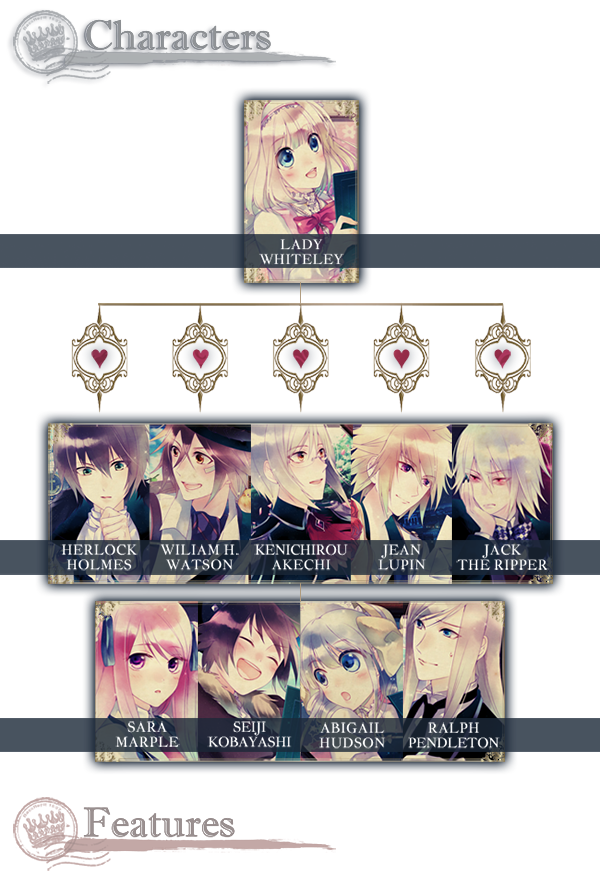 Find love with personalities inspired by famous figures and works of fiction, including Detective Holmes, Gentleman Thief Lupin, Jack the Ripper, and more.