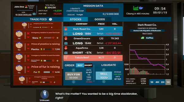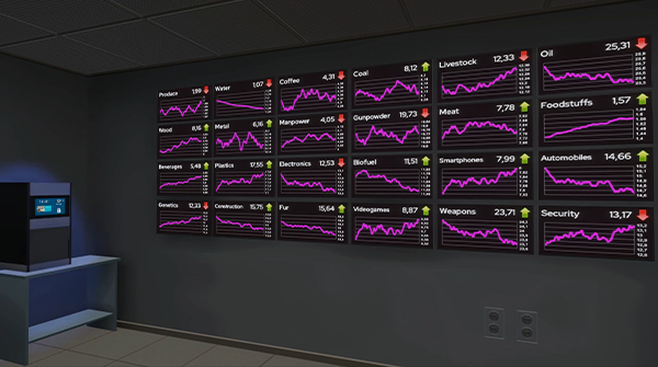Use your profits to lobby key groups in the community, driving the price of raw commodities up or down to suit your stock market portfolio.