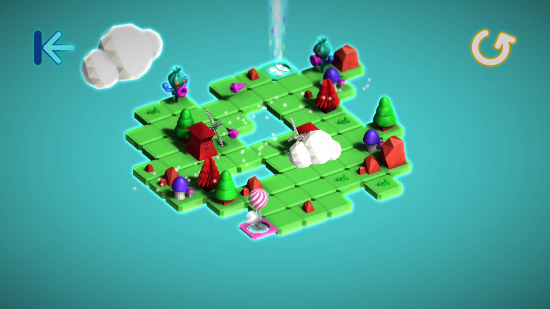 The windmills is blowing. Mongol can move towards the same direction of the wind. But be careful with the wrong path and the red conifers.