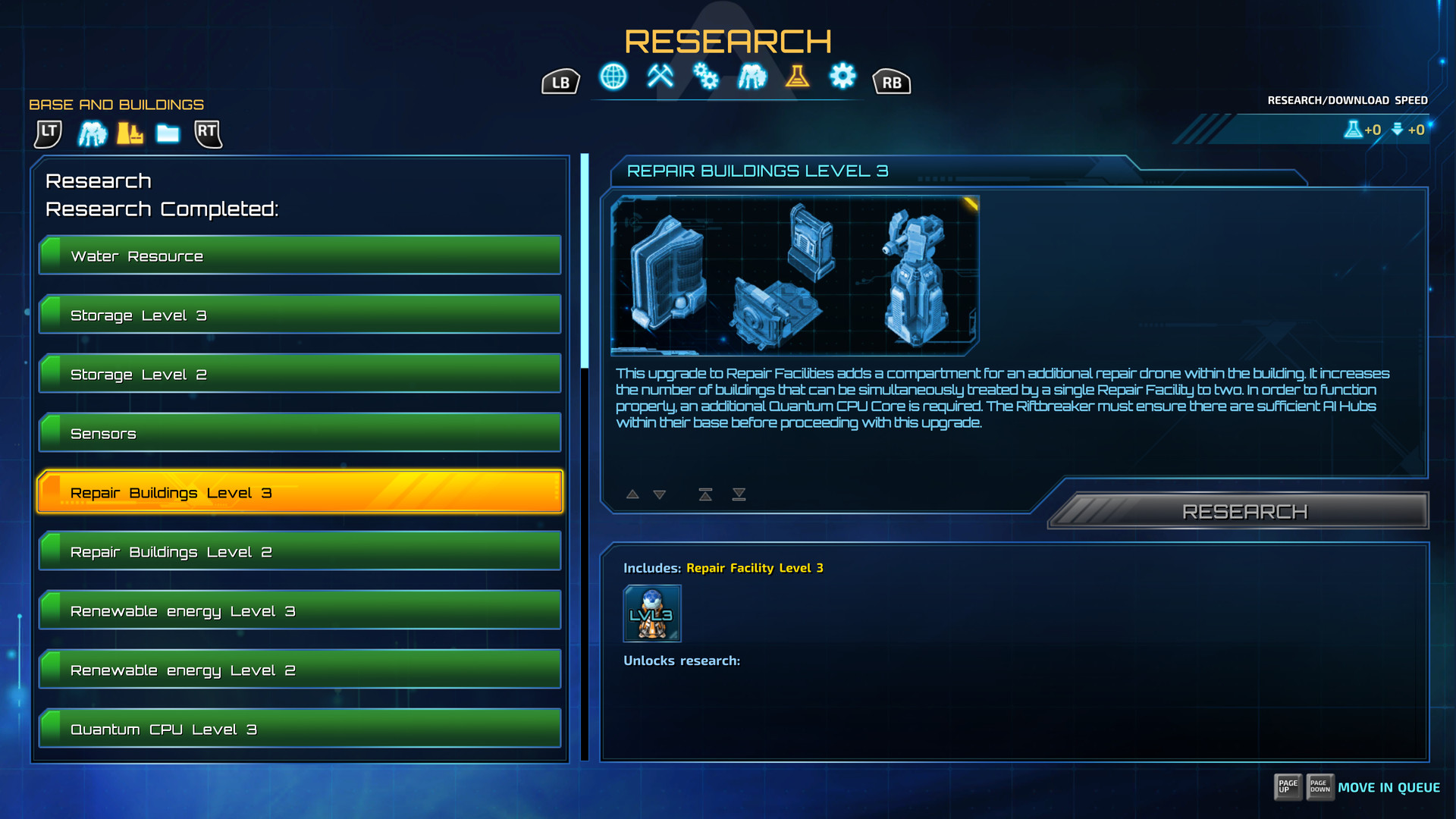 여러분은 강력한 메카수트를 입은 엘리트 과학자 겸 특전사를 뜻하는 리프트브레이커인 애쉴리 S. 노워크를 조종하게 됩니다. 일방통행 포탈을 타고 은하수에서 멀리 떨어진 갈라테아 37로 이동하여, 지구로 돌아가 개척을 계속할 수 있도록 기지를 건설하세요. 애쉴리가 "미스터 릭스"라 이름붙인 메카수트는 극한의 환경을 버텨낼 수 있으며, 기지 건설과 자원 추출, 표본 채취는 물론 전투에까지 필요한 장비를 빠짐없이 갖추고 있습니다. 이를 통해 광대하게 펼쳐진 우주를 연결하는 단층들을 여행할 수 있습니다.기본 건물