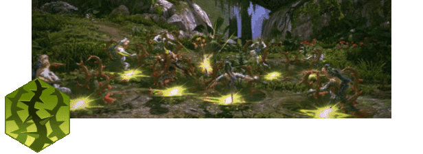Launches a wave of roots/lianas (6-8 yards wide) at a speed of 15 yd/sec. Inflicts damage and roots enemies, lifting humans with lianas. Basic attacks can reset the