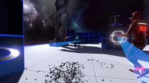 Your primary goal is to shoot the ball through the opposing teams goal ring. To stop opponents you can slice them with discs you can spawn at any time. In short you could describe this game as mixture of basketball and a disc battle in arenas full with obstacles and hiding places.