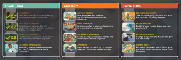 Grow your workforce and delegate all aspects of production. Using the powerful logistics options you’ll be able to automate your business. Optimize your setup and pave a road for success!