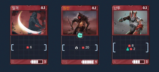 : 우리는 카드 드로잉이나 카드의 랜덤한 성능 없이 승리를 거머쥘 수 있는 게임을 만들고 싶었습니다. 플레이어들은 최대 15장의 카드의 사용 순서를 잘 배열해 가장 효율적이고 전략적인 전투 흐름을 구성할 수 있습니다.전략적인 덱 구성