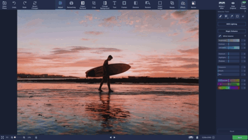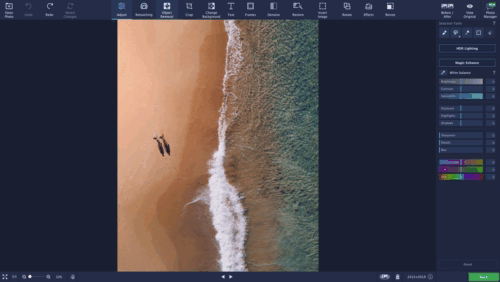직접 사진을 편집하느라 시간을 낭비하지 마십시오 - 새롭게 개선된 자동 보정 기능을 사용해보십시오. 뉴럴 네트워크 기반의 스마트 알고리즘이 바로 사진을 편집해 줍니다. 마우스를 클릭하기만 하면 됩니다. 프로그램이 이미지 색상을 분석하고 최상의 설정을 선택하므로, 채도가 높아지고, 디테일이 매우 선명해집니다.