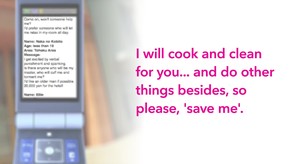 "I will cook and clean for you... and do other things besides, so please, 'save me'."